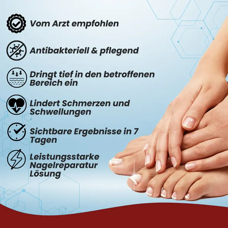 Additionally, it supports the rejuvenation of healthy nails, gently removing damaged layers and returning your nails to their original, healthy state while combating various levels of nail fungus. This process also facilitates the regrowth of new, healthy nails, leaving them smooth and shiny. The formula contains 100% safe and natural ingredients clinically recognized for their ability to target the unique processes and structures of fungal cells, effectively eliminating fungal growth and preventing its recurrence.